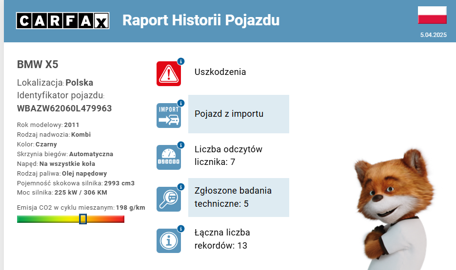 CARFAX korzysta z tysięcy różnych baz danych, dlatego raporty z tej strony są wiarygodne. Dane, których możemy się dowiedzieć z CARFAX to m.in.